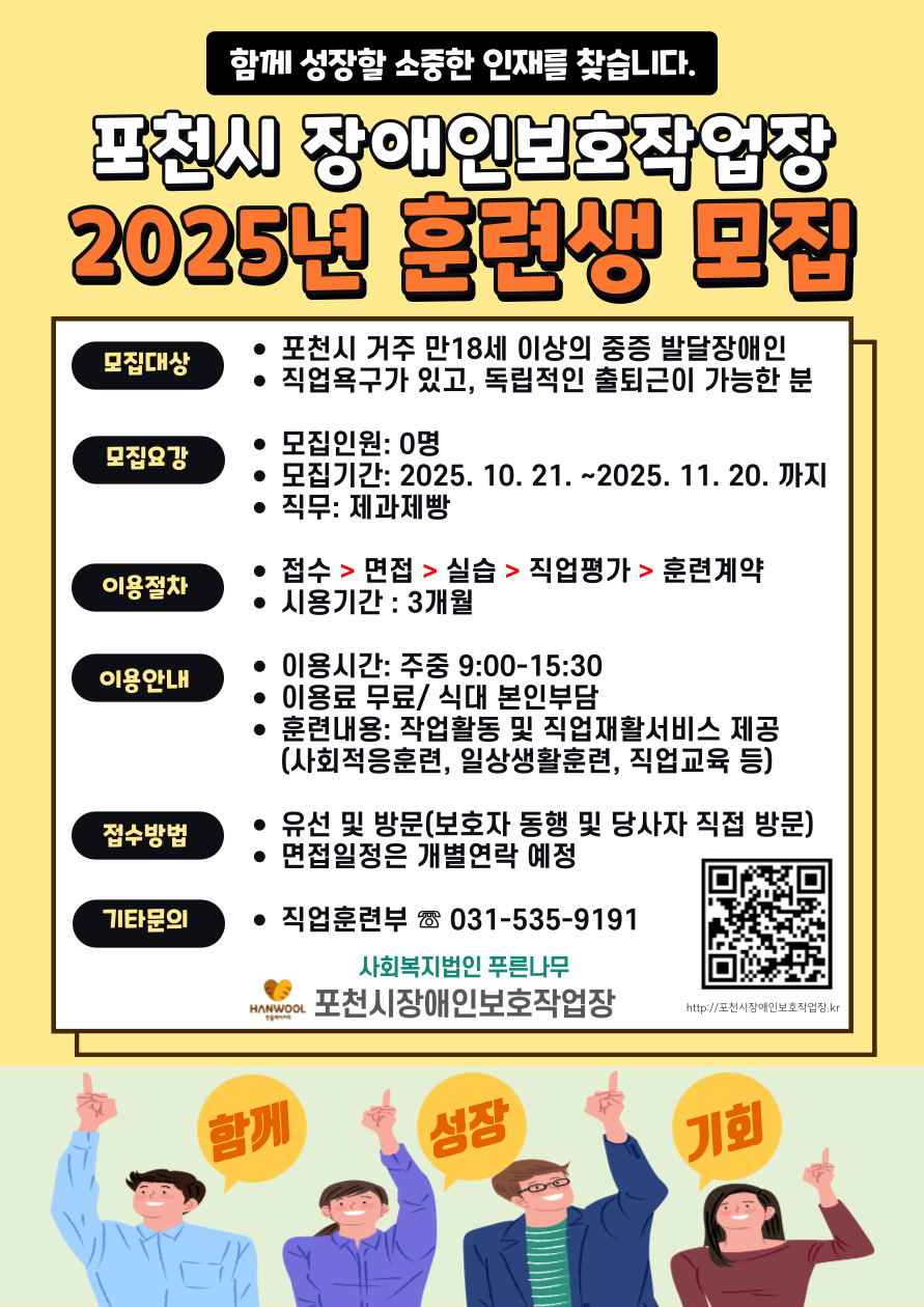 2025년 4분기 훈련장애인을 다음과 같이 모집하오니 많은 관심 부탁드립니다.